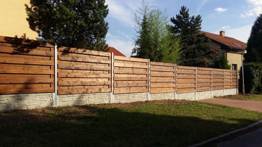 Kompletní úprava venkovních plot a stavba nového plotu u rodinného domu. Přední plot byl postaven z tvarovek z betonových plotových panelů, kovových sloupků a jako výplně slouží horizontálně montovaná prkna. Prkna jsou montovaná z obou stran, poskytují tak majiteli maximální soukromý. Zákazníkovi jsme také položili všechny zpevněné plochy pro auto a pěší, společně s novou terasou.