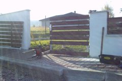 Jako plotové výplně jsou použity plotovky, které jsou natřeny kontrastní tmavou barvou. Celkově tato kombinace působí velice elegantně a nadčasově. Ve stejném stylu jsou zhotoveny i obě brány a branka